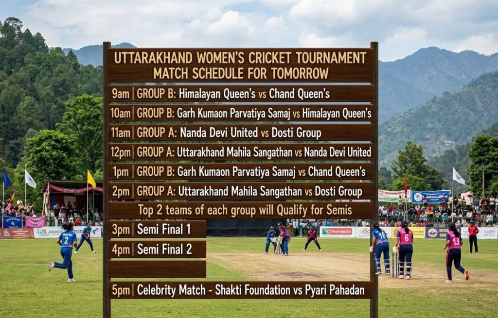 सेमीफाइनल मुकाबले पहला सेमीफाइनल हिमालयन क्वींस इलेवन और गढ़ कुमाऊं पर्वतीय समाज, विरार के बीच खेला गया। टॉस जीतकर पहले बल्लेबाजी करते हुए गढ़ कुमाऊं टीम ने 5 ओवर में 1 विकेट खोकर 62 रन बनाए। लक्ष्य का पीछा करते हुए हिमालयन क्वींस ने जोरदार प्रयास किया, लेकिन अंततः 1 रन से हार का सामना करना पड़ा। इस जीत के साथ गढ़ कुमाऊं पर्वतीय समाज, विरार फाइनल में पहुंचने वाली पहली टीम बनी। दूसरा सेमीफाइनल नंदा देवी यूनाइटेड इलेवन और दोस्ती ग्रुप इलेवन के बीच खेला गया। टॉस जीतकर नंदा देवी यूनाइटेड ने पहले बल्लेबाजी करते हुए 5 ओवर में 1 विकेट खोकर 93 रन का विशाल स्कोर खड़ा किया। जवाब में दोस्ती ग्रुप इलेवन की टीम 31 रन ही बना सकी। इस जीत के साथ नंदा देवी यूनाइटेड इलेवन ने फाइनल में प्रवेश किया।फाइनल मुकाबला 29 मार्च को सिडको क्रिकेट मैदान, बेलापुर में खेला जाएगा।पूरे टूर्नामेंट में काव्य उपाध्याय, चेतना, ज्योति ठाकुर और रेवा घनाटा ने अपनी शानदार बल्लेबाजी और खेल कौशल से दर्शकों व मुख्य अतिथियों को मंत्रमुग्ध कर दिया