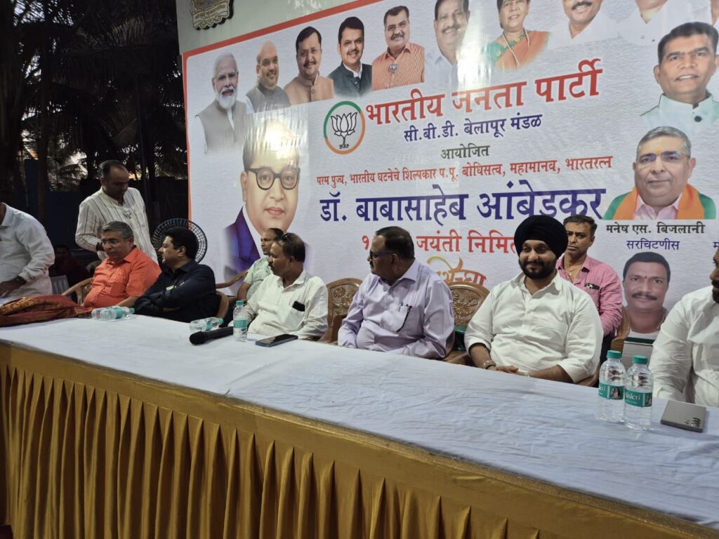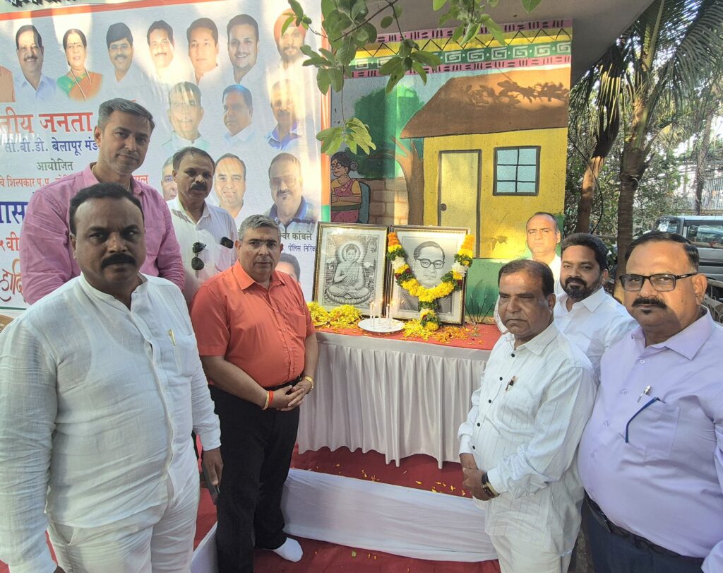 जिसकी अध्यक्षता पूर्व वरिष्ठ पुलिस अधीक्षक सिद्धेश्वर कांबळे ने की भाजपा अल्पसंख्यक सेल के सय्यद अकबर, मंडल महामंत्री मनेष एस बिजलानी, दीपक पंजवानी,नवी मुंबई मनपा में स्वीकृत नगरसेवक सरदार कुलदीप सूरी,और यहां मौजूद लोगों ने बाबासाहेब आंबेडकर की प्रतिमा को पुष्प अर्पित कर वंदन कर किया ।