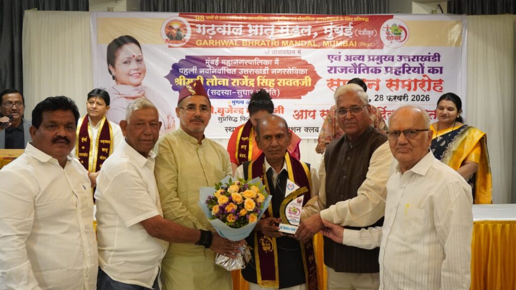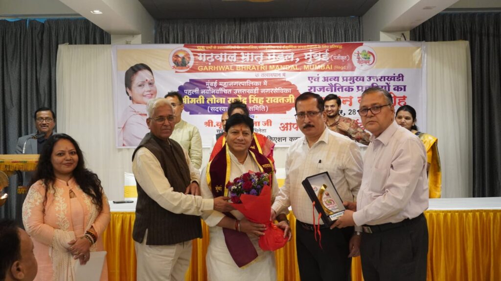 कार्यक्रम में मुंबई महानगरपालिका में उद्धव शिवसेना के टिकट पर जीती पहली नवनिर्वाचित उत्तराखंडी नगर सेविका श्रीमती लोना राजेंद्र सिंह रावत सहित मुंबई के राजनीतिक प्रहरियों को सम्मानित किया गया।