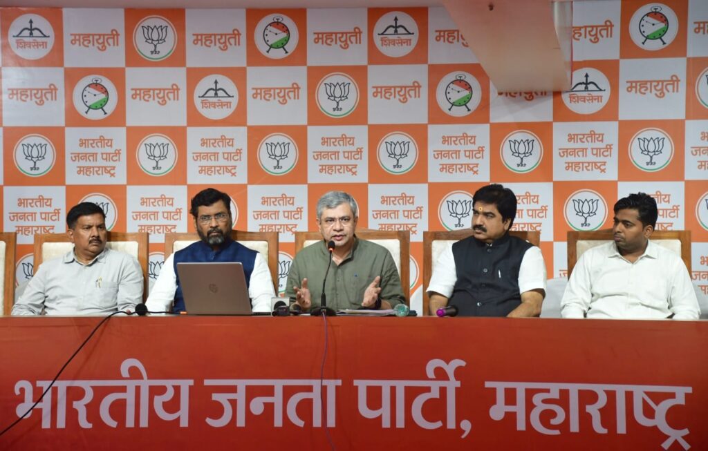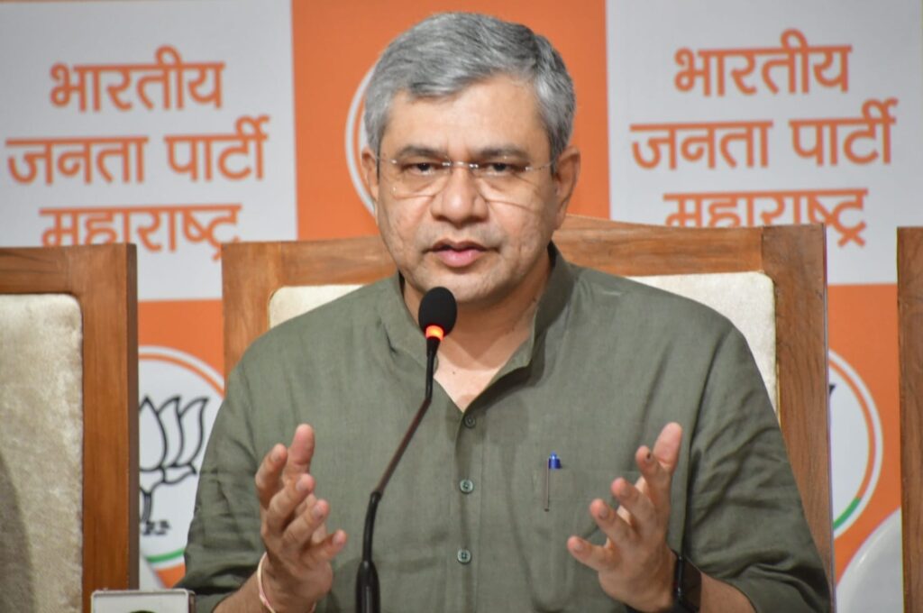 भाजपा मीडिया सेंटर में आयोजित संवाददाता सम्मेलन में रेलमंत्री वैष्णव बोल रहे थे।