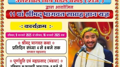उत्तरांचल मित्र मंडल वसई*आयोजित श्रीमद्भागवत कथा ज्ञान यज्ञ रविवार ९फरवरी से