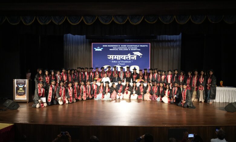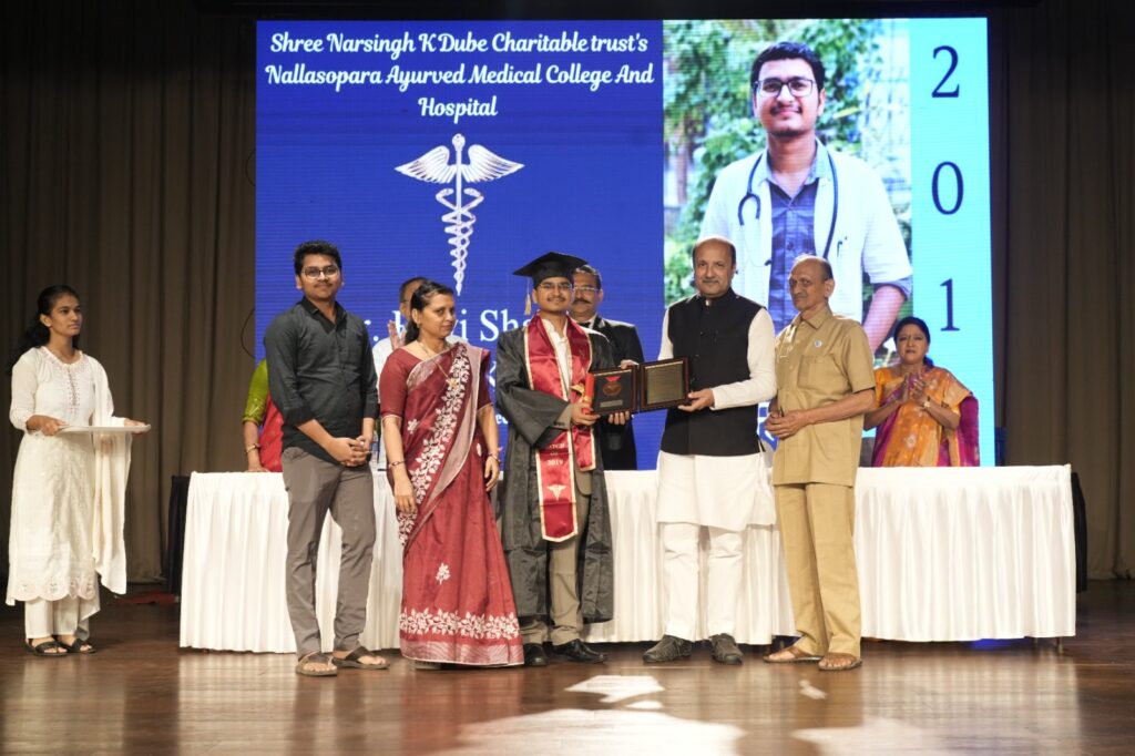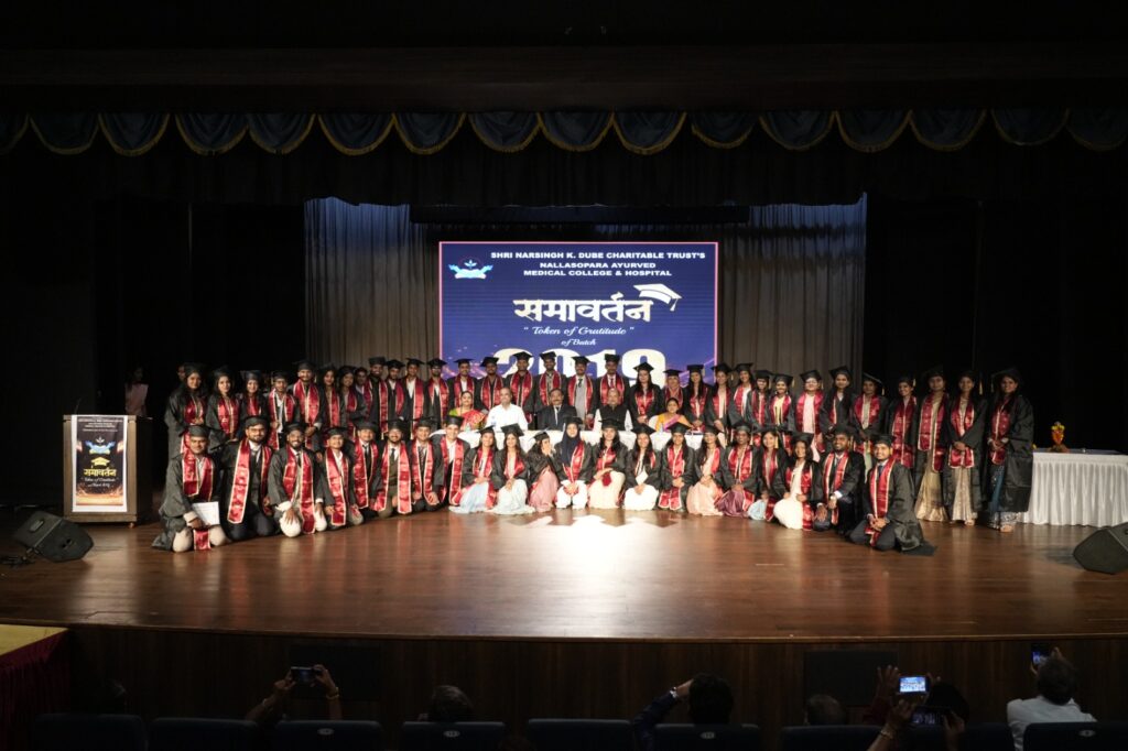 श्री नरसिंह के दुबे चॅरिटेबल ट्रस्ट द्वारा संचालित नालासोपारा आयुर्वेद मेडिकल कॉलेज एवं अस्पताल द्वारा बीते शनिवार को मीरा रोड स्थित लता मंगेशकर नाट्यगृह में बीएएमएस 2019 बैच में शामिल हुए विद्यार्थियों के सम्मान में “समावर्तन 2025 – टोकन ऑफ ग्रैटीट्यूड” कार्यक्रम का आयोजन किया गया।